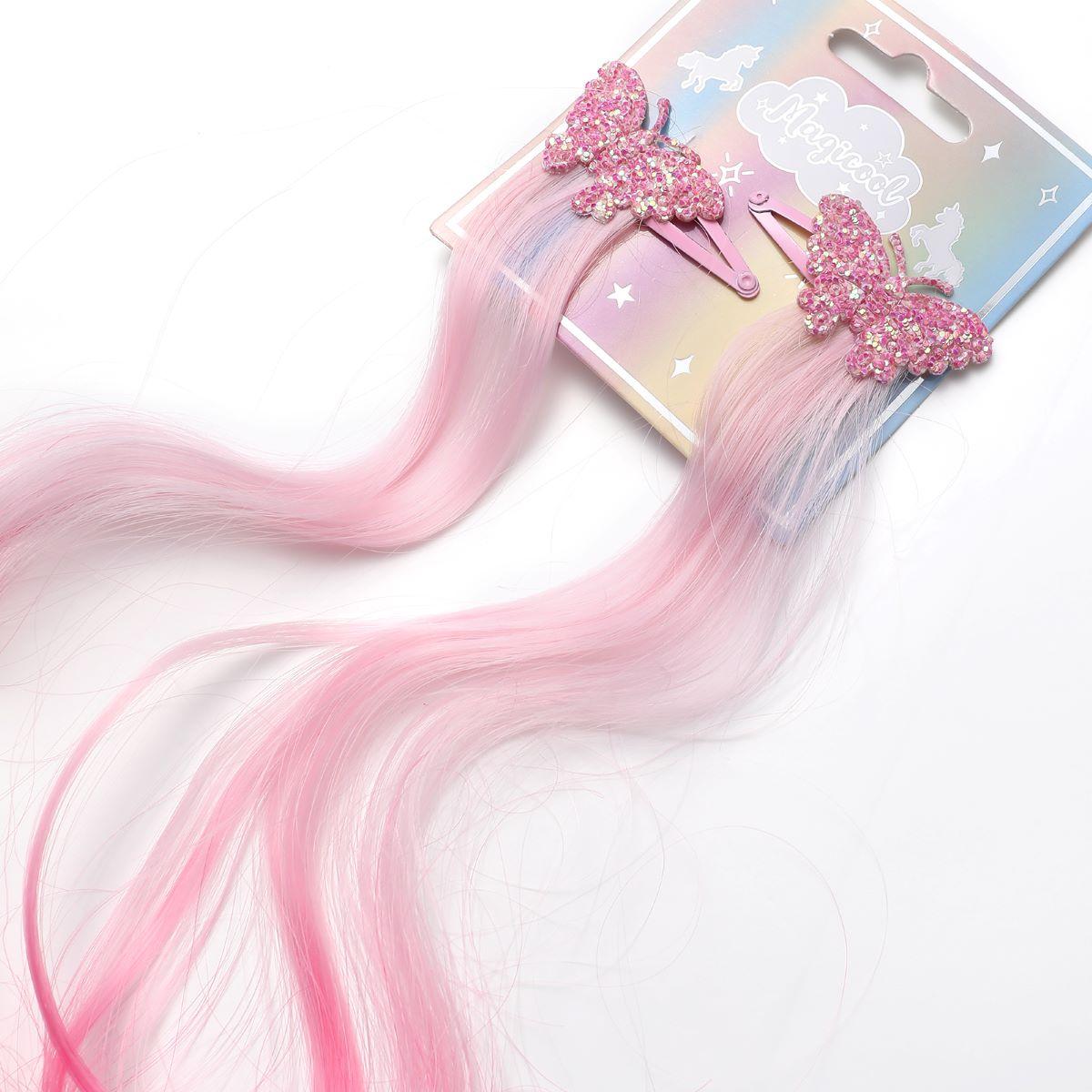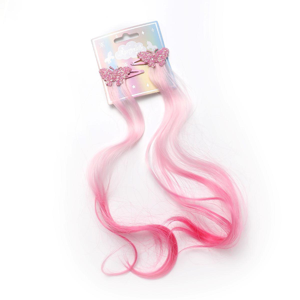 Card of 2 Hair Extension with Unicorn Motif Pink