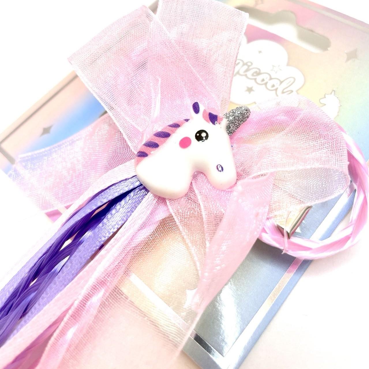 Braid and Ribbon Hair Extension Clip with Unicorn Motif