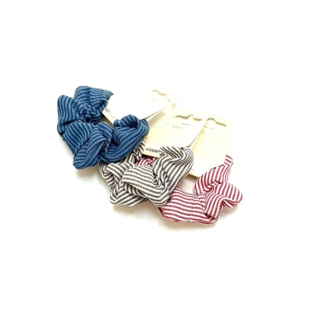 Card of 1 Stripe Scrunchy, Red, Blue Green 3 Colors Mixed